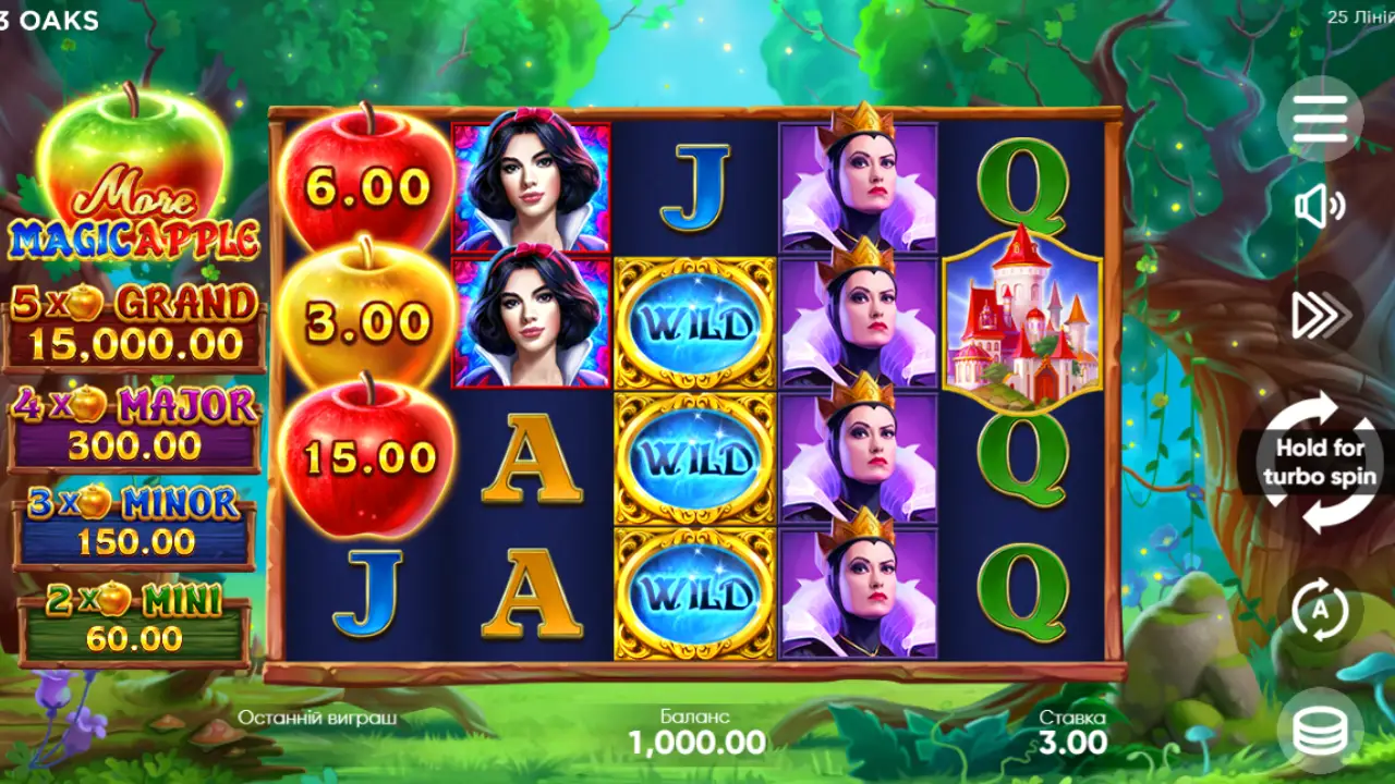 More Magic Apple – це захопливий відеослот, розроблений відомим провайдером 3oaks. З моменту запуску гра привернула увагу своїм унікальним казковим дизайном, натхненним чарівними історіями, і яскравою графікою.